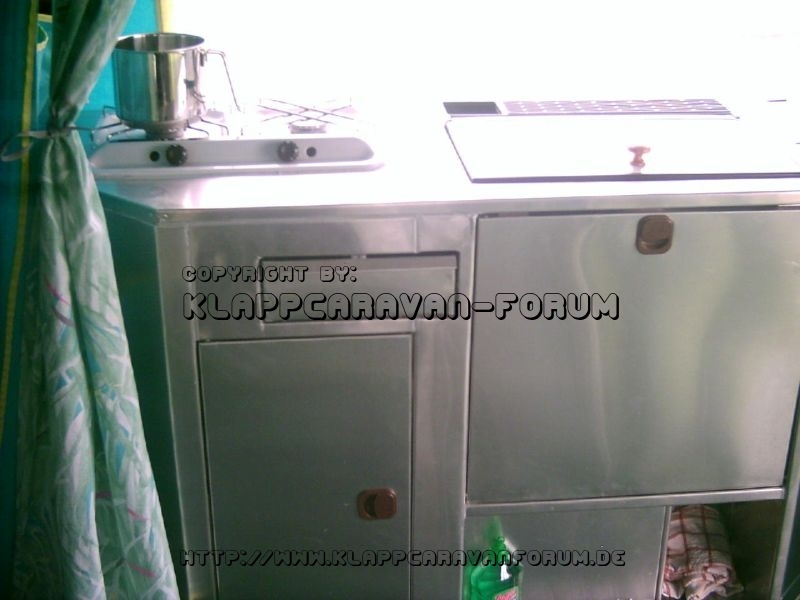 Die Töpfe, der Kaffee und die Bodum werden im Fach unten rechts verstaut - wo hier das Geschirrtuch liegt.