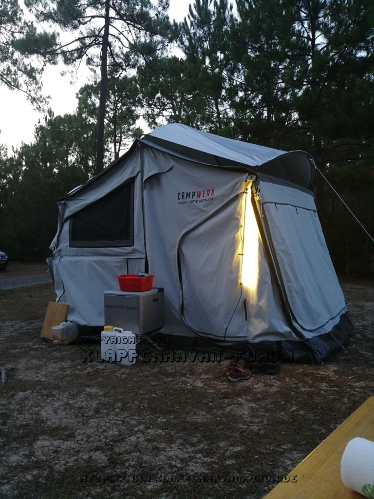 Der kleine Aufbau. Schnell ab Abreisetag. Daher bauen wir das Vorzelt, sowie die Einrichtung im Vorzelt schon am Vorabend ab. Besonders wenn der nächste Tag Regen bringt. So bleibt viel mehr trocken.