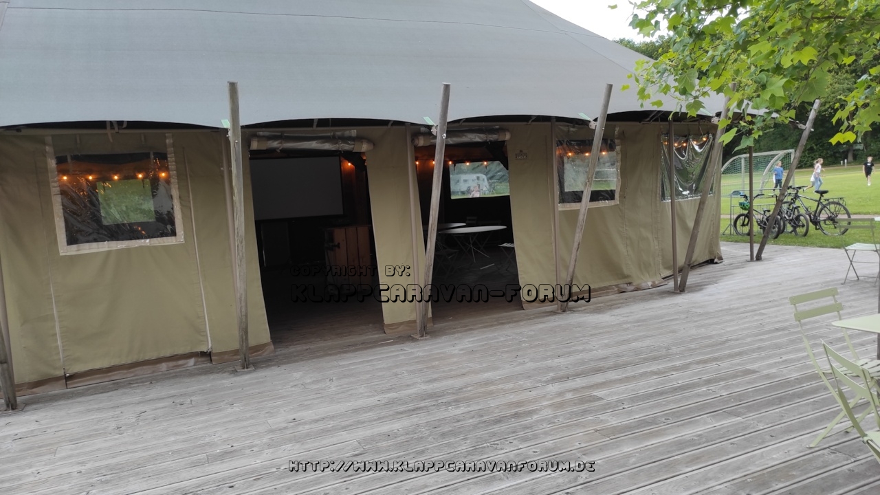 Gastro Terasse, hier das Zelt für TV-Schauen oder anderen Aktivitäten