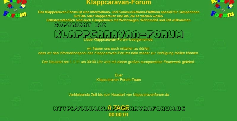 Die letzte Sekunde vor dem Neustart des Klappcaravan-Forums am 01.01.2011 (festgehalten von Christiaan)