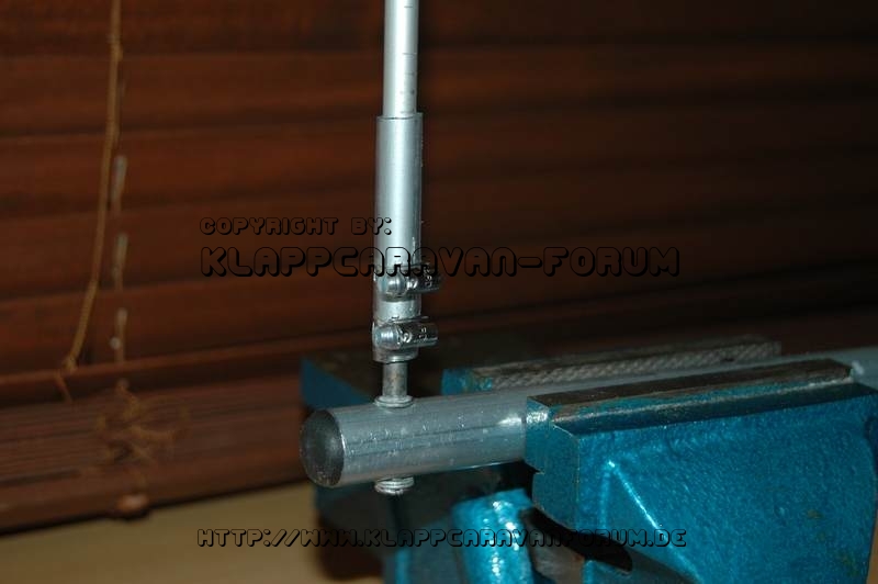 Befestigung mit 8 mm-Alurohr auf einem Zeltdorn (6 mm)