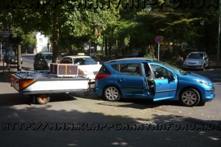Mit Hoppel 1 (CC 300 Bj 1975) Aufbruch in den Urlaub. Auf dem CC die zwei Küchenboxen die am Zielort dann eine bequeme Kochecke eregeben