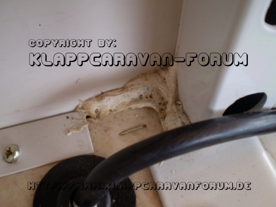 allerdings habe wir festgestellt, dass die aussage von unserem händler - einmal aufgeklappt und kein mal benutzt - nicht stimmen kann. da die faulstreifen ziemlich verschmutzt und ein bisschen geschimmelt sind, im moskitonetz der küche ein ca. 4 mm großes loch ist und sich im hauptwagen der bodenbelag ein bisschen ablöst (s.bild).