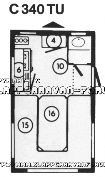 Dies ist ein 2 Personen Wohnwagen, ein sogenannter Längsschläfer, da der Wohnwagen zu schmal ist um in die Breite zu schlafen, deshalb hat diese Modell ein Bugkuche.