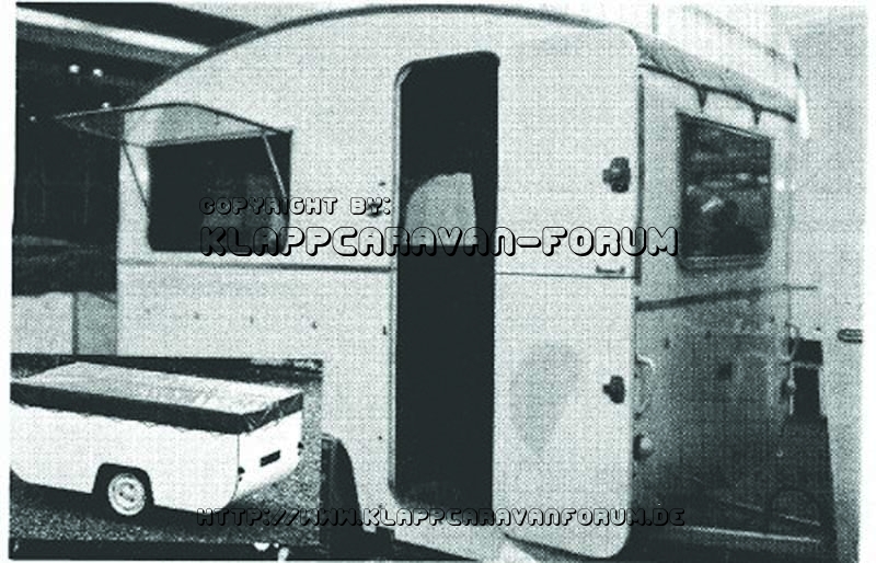 Diese Esterel hatte bereits Polyester aussenwände und eingeklappt hatte er eine höhe von 120 Cm. Mit ein Leergewicht von 295 Kg war er von jeden Fahrzeug zu ziehen.