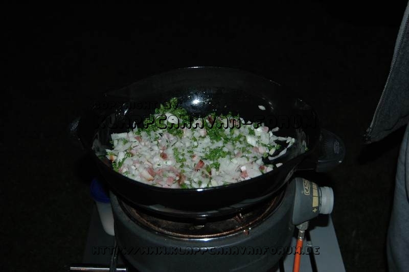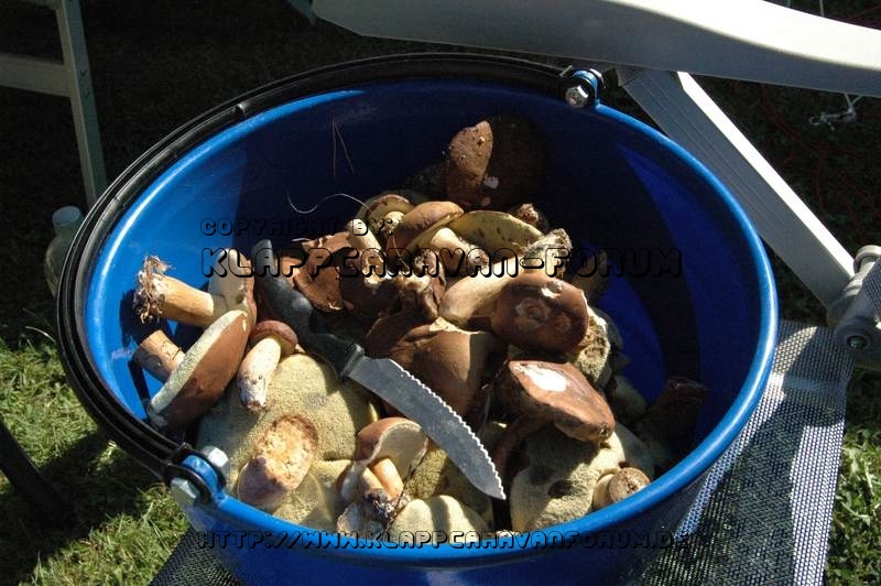 Zum Abendbrot wurden wir verwöhnt mit Grünkohleintopf, einer Pilzpfanne mit selbst gesammelten Pilze und einer guten Portion Leberkäse, den Norbert in seinem Campingbackofen zubereitet hatte.