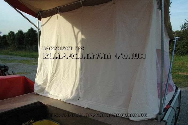 Der SK-Falter ist, wie bei den meisten Rechts-Links-Klappern üblich, mit Matratzenverbreiterungen, die an die Matratze auf dem Lattenrost mit einem Reißverschluss angezippt werden, ausgestattet. Schon nach dem ersten Sommerurlaub war uns klar, dass wir bei eine Matratzenbreite von 1,36 m auf dem Lattenrost zukünftig auf die Verbreiterung verzichten wollten. Im Zelt hatten wir eine selbstaufblasende Doppenmatratze von 1,20 m Breite und zuhause nächtigen wir auch auf 1,40 m, also reichen uns 1,36 m vollkommen und wir haben beim Aufbau nicht mehr die Arbeit mit den Verbreiterungen. Zudem gewinnt man dadurch noch ordentlich Stauraum.