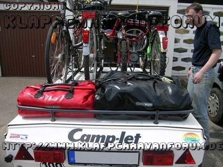 Oben auf dem Camplet sind noch zwei Ortlieb Taschen