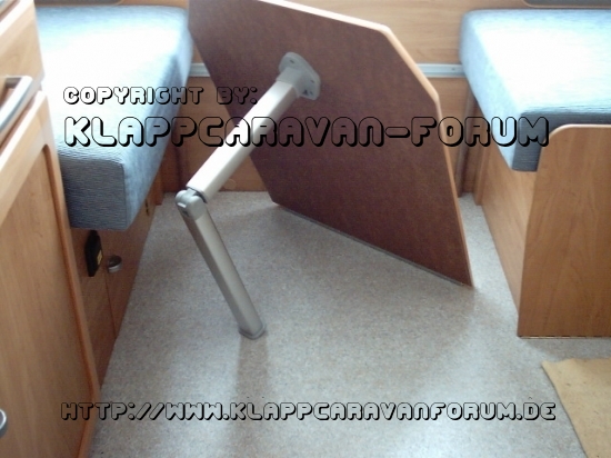 Bild 1: Tisch der Bugsitzgruppe, abgenommen mit abgeklapptem Tischbein