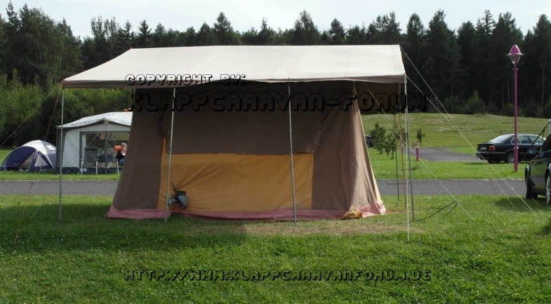 Über einem Ct6.Laut Auskunft des Besitzers waren diese Überzelte für Dauercamper gedacht die statt Wohndose nen Klappfix auf dem Dauerplatz hatten.Diese Überdächer waren allerdings weniger als Regenschutz gedacht sondern mehr dazu da um das Zelt des Klappfix vor UV-Licht zu schützen und das Ausbleichen und Mürbewerden des Zeltstoffes zu verhindern.