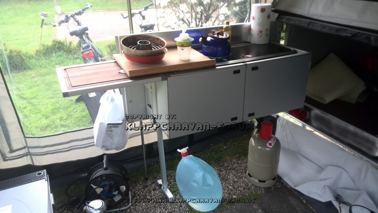 Unsere Campwerk Küche. Noch fehlen Gas, Wasser- und Grauwasseranschluss.