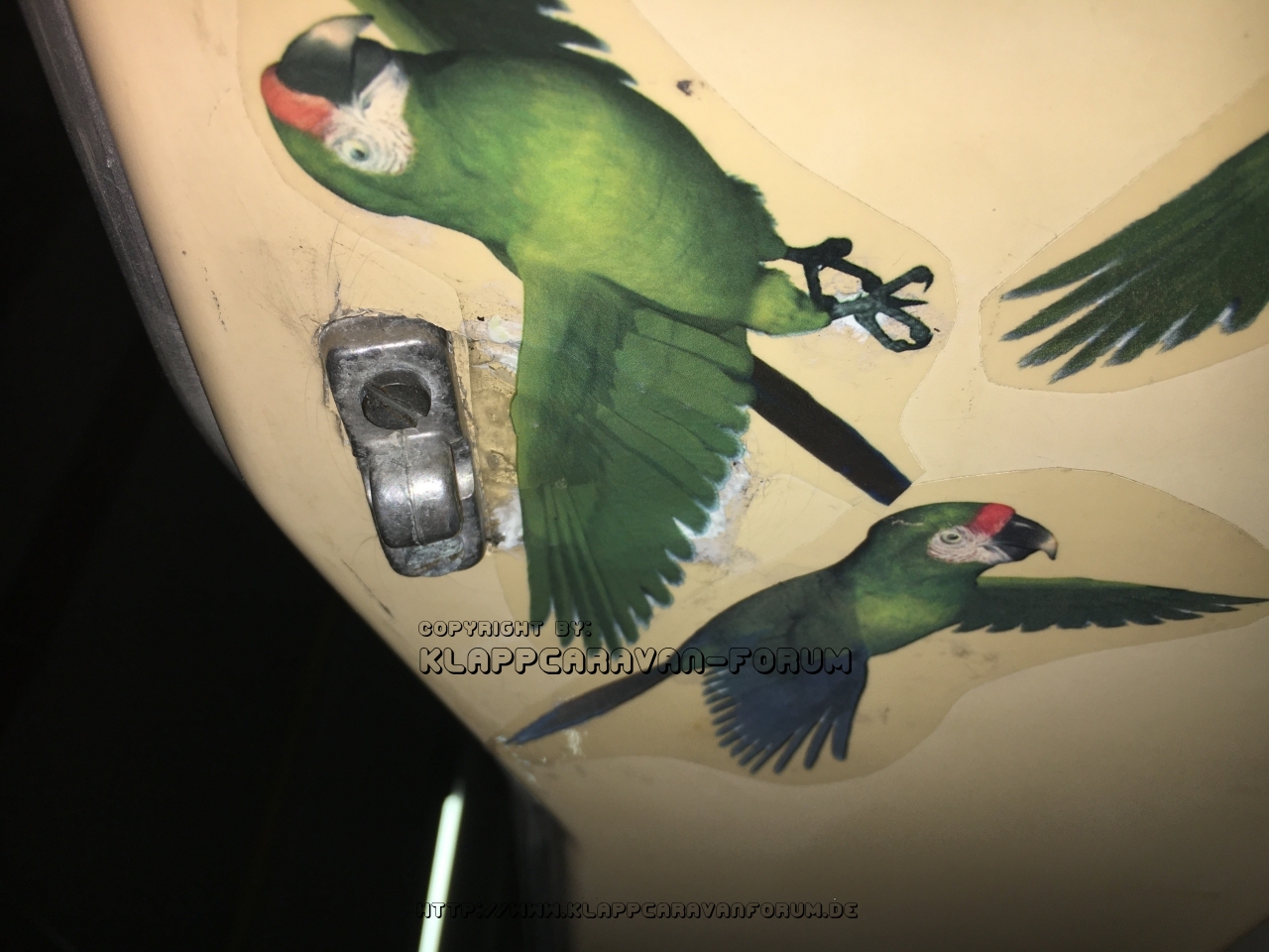 Anscheinend wurde der Schaden mit der Metallklappe behoben. Nun ist ein Loch im Dach, die Platte hält alles zusammen.