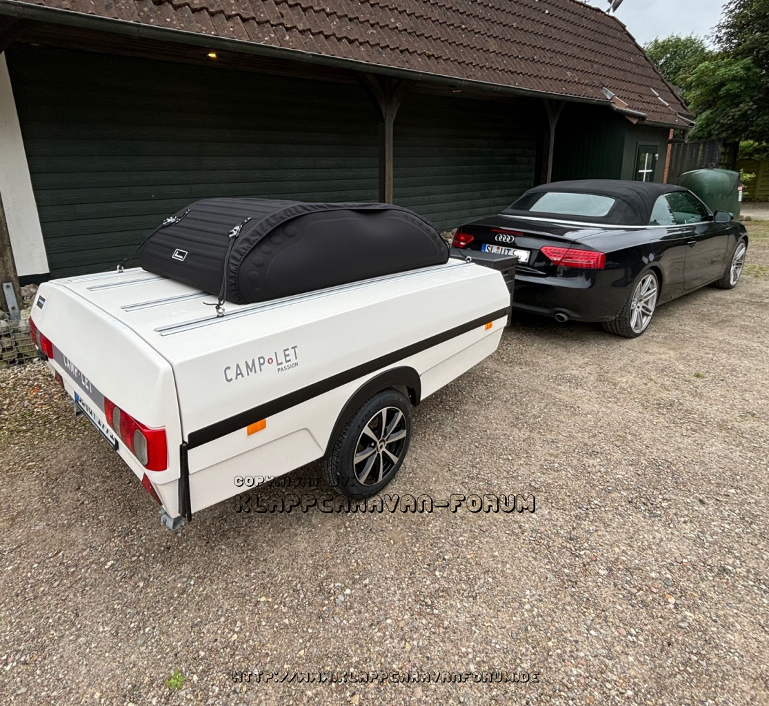 Unser Gespann für den Italien-Urlaub 2024: Audi A5 3.0 Cabrio und der Camp-Let Passion.