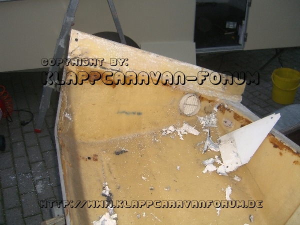 GFK-Front von den Kleberesten und der Metallplatte befreit