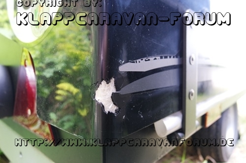 Deckel mit Kettensäge angesägt und GFK aufgerissen
