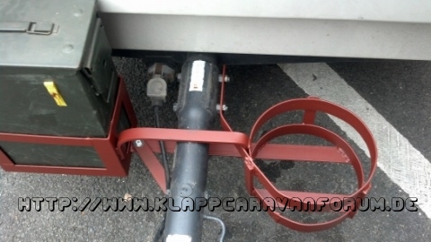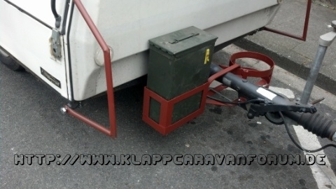 Da ja bedingt durch die Frontklappe keine herkömmliche Deichselbox bzw. Deichselhalterung an diesen Faltcaravan passt,