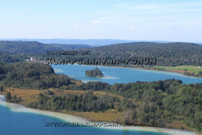 Die Landschaft in der der Campingplatz liegt ist teilweise atemberaubend. Es gibt in der direkten Umgebung neben dem Lac de Chalain noch viele weitere Seen. Vom Belvedere de 4 Lacs hat man eine grandiose Aussicht auf vier von ihnen.