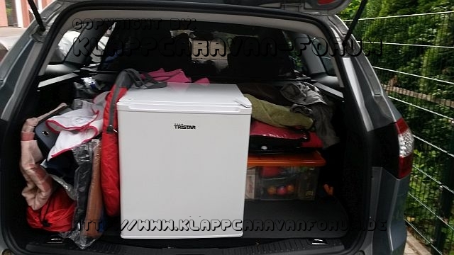 ich meine einen normalen Kühlschrank, unsere Tristar Kühlbox wird in Kroatien leider nicht kühl genug, deswegen nehmen wir seit Jahren einen normalen 220V Kühlschrank mit, und das war mit Zelt und Anhänger kein problme, war ja genug platz. Aber im Falti (Trigano Odyssee) passt er ja nicht rein.